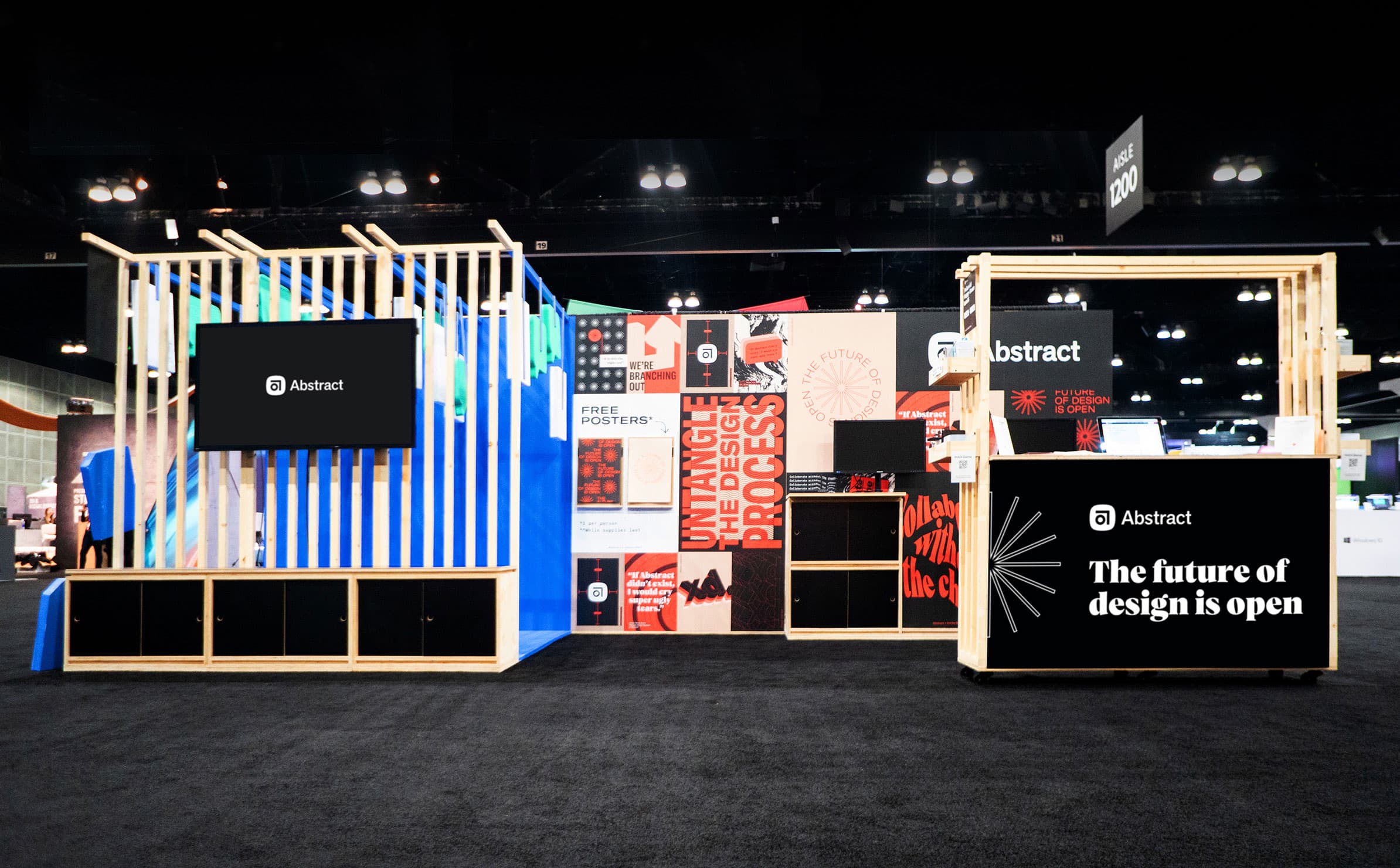 Abstract creates version-control and collaboration tools for design teams. They approached us to design a trade show booth that they would unveil at the Adobe Max conference and use at subsequent events. Our clients at Abstract were designers and the audience of the trade show was primarily designers as well, so it was critical the booth be considered and creatively inspiring. Working with Ben Laramie, we created a structure that utilizes a poster wall that is easily re-skinned for new events, product demo stations, a satellite “welcome” stand, and a blue “tunnel” meant for social-media portraits and sharing. The whole booth breaks down into three crates for storage and shipping. In addition to the booth itself, our scope also included team gear, giveaways, and collateral.